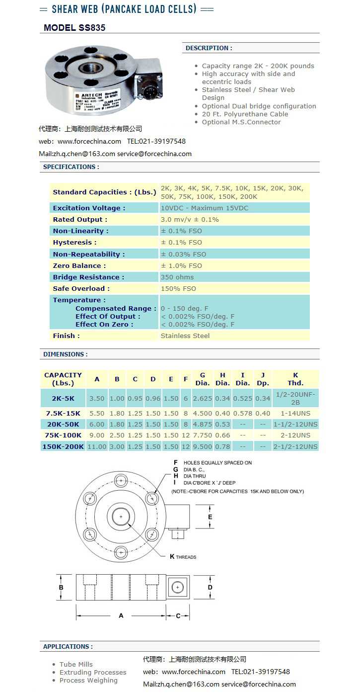 型號:美國Artech輪輻式測力傳感器ModelSS835
